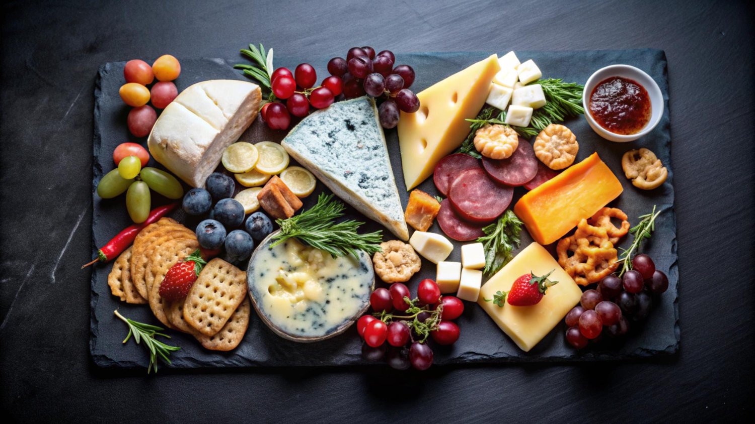 Chef-styled spreads with cheeses, meats, fruits etc