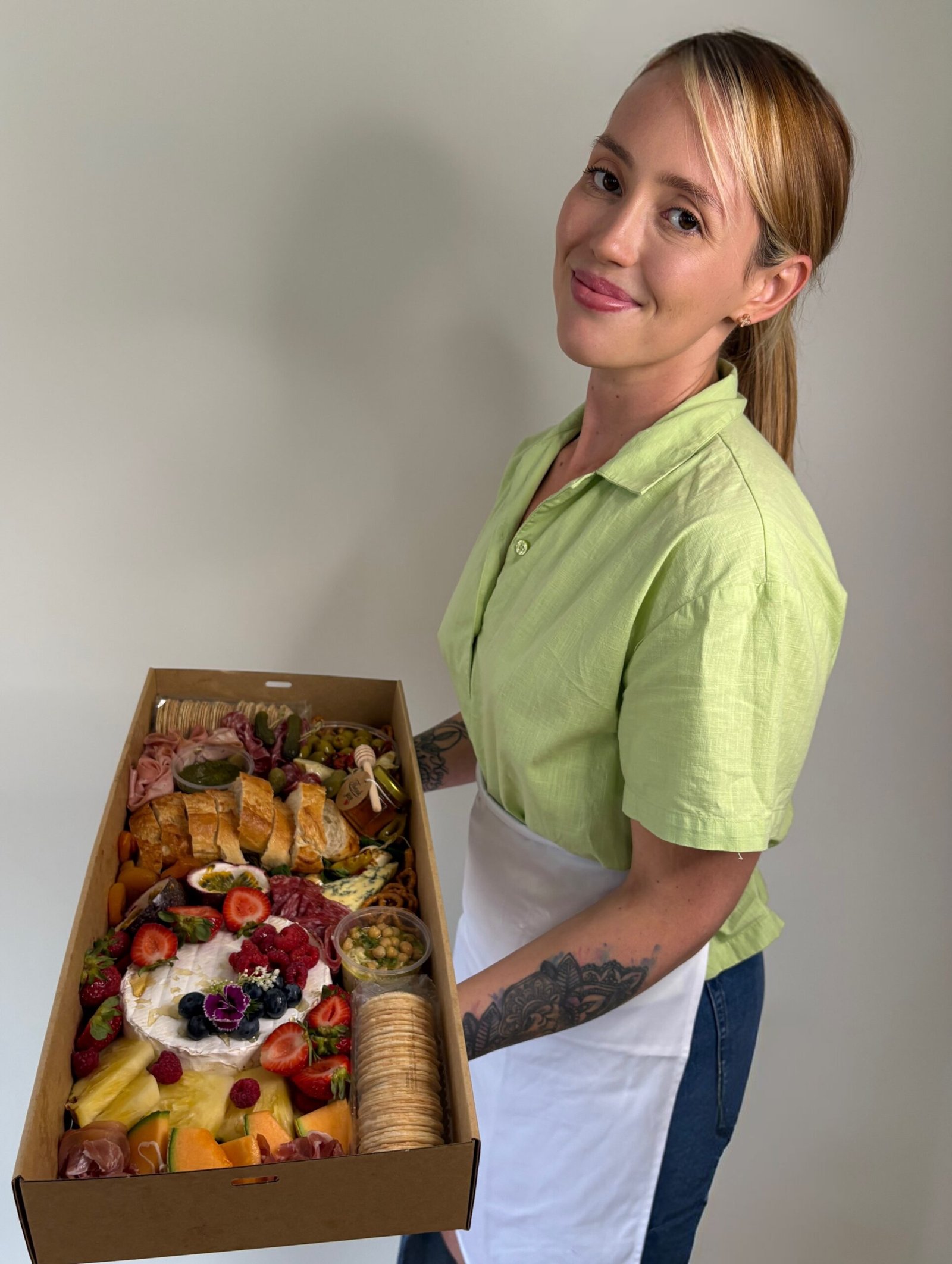 I’m Bonnie—founder of Bonnie & Brie and a qualified chef based in Brisbane. I’ve always believed that sharing good food is the simplest way to bring people together, and I’ve seen how a beautiful spread can turn a room into a gathering. Based in Brisbane, I curate abundant, fresh-first event carts, grazing boards, boxes—styled with artisan cheeses, mixed deli meats, seasonal produce, and thoughtful little details that make people linger and talk.