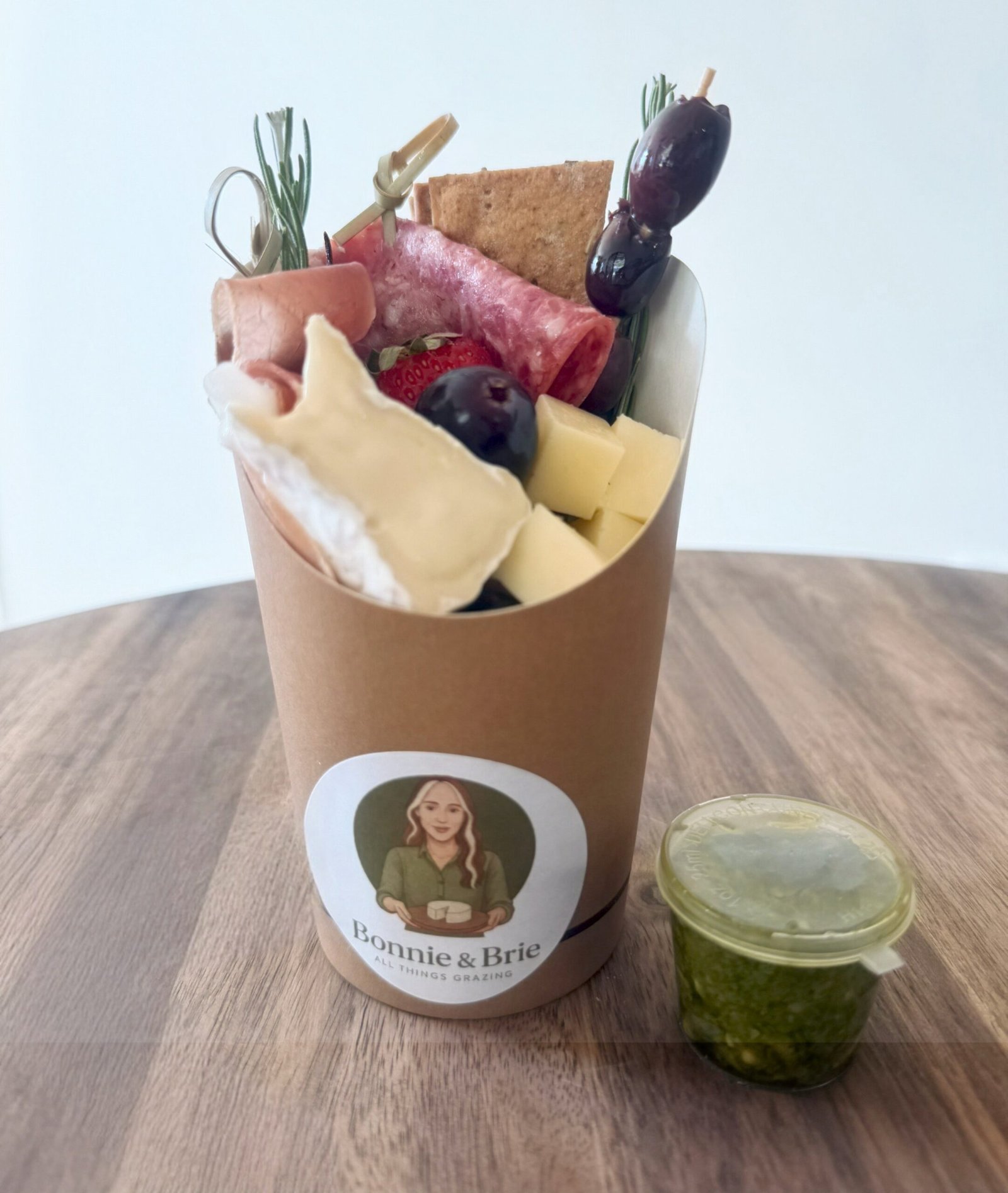 Our individual Charcuterie Cups are a stylish and convenient grazing option, perfect for events, corporate catering, and celebrations where individual servings are preferred.